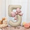 40 Inch Number 0-9 Balloon Cream White with Light Pink Bow Aluminum Foil Balloons New Year Decorations Birthday Party Balloons
