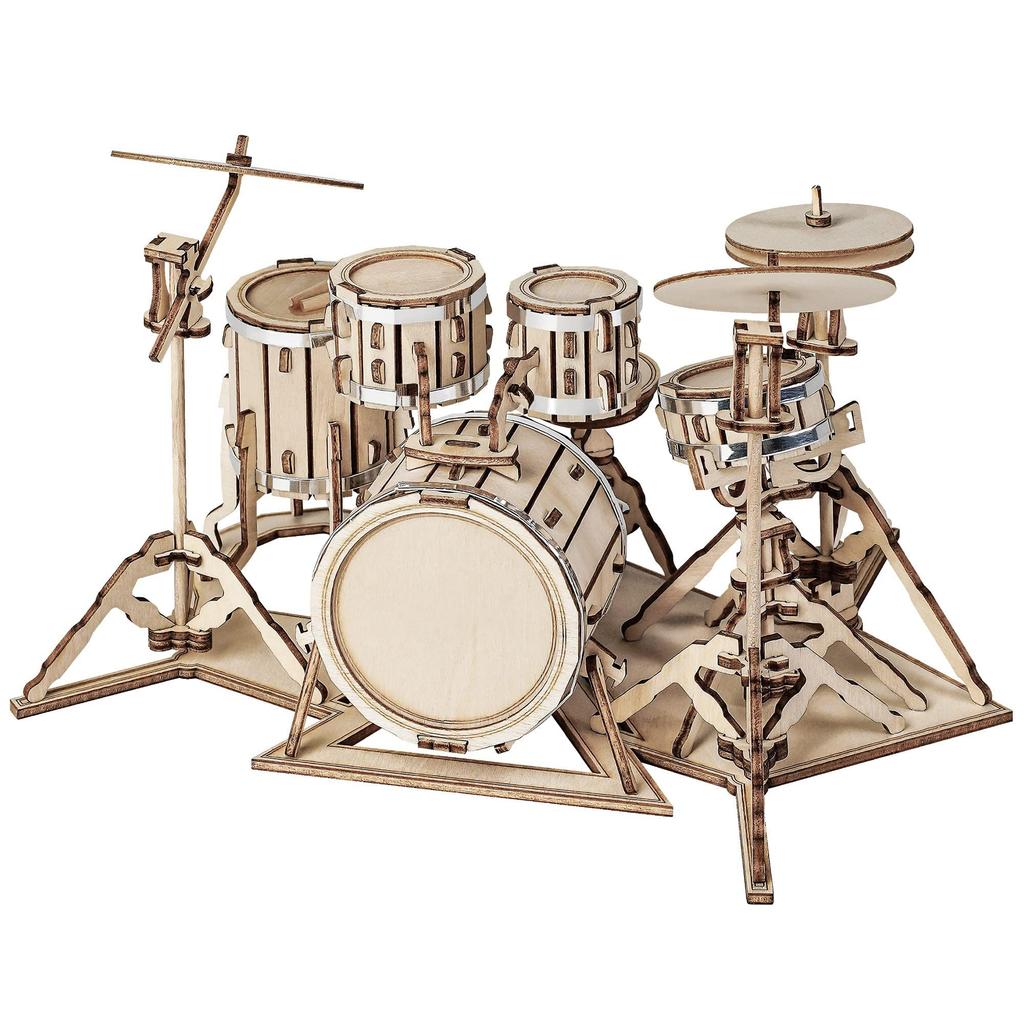 Robotime 3D Puzzle Wooden Puzzle Craft Gift Toy Educational Toy for Boys Girls Adults Preschool Gift New Year Birthday Christmas Present Gift Drum Set