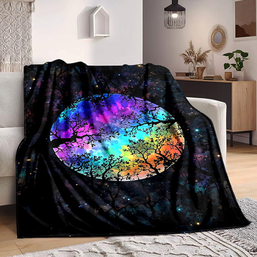 1pc Galaxy Trees Blanket, Lightweight Flannel Throw Blanket for Sofa, Bed, Travel, Camping, Living Room, Office, Couch039