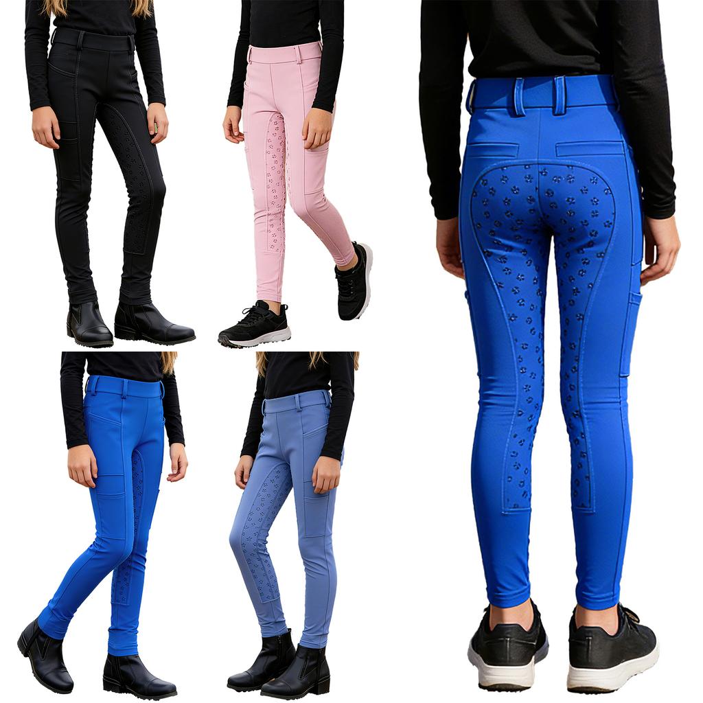 Boys Girls Horseback Riding Leggings Full Seat Anti-slip Breeches with Multiple Pockets for Equestrian Sports Kids