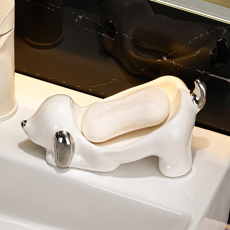 Cute cartoon draining soap dish creative home ceramic sausage dog no water accumulation sink soap box holder soap holder