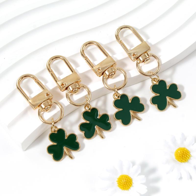 5/10Pcs Alloy Green Clover Leaf Shaped Keychain Minimalist Style Bag Charm Used For Diy Jewelry Accessories Holiday Gifts