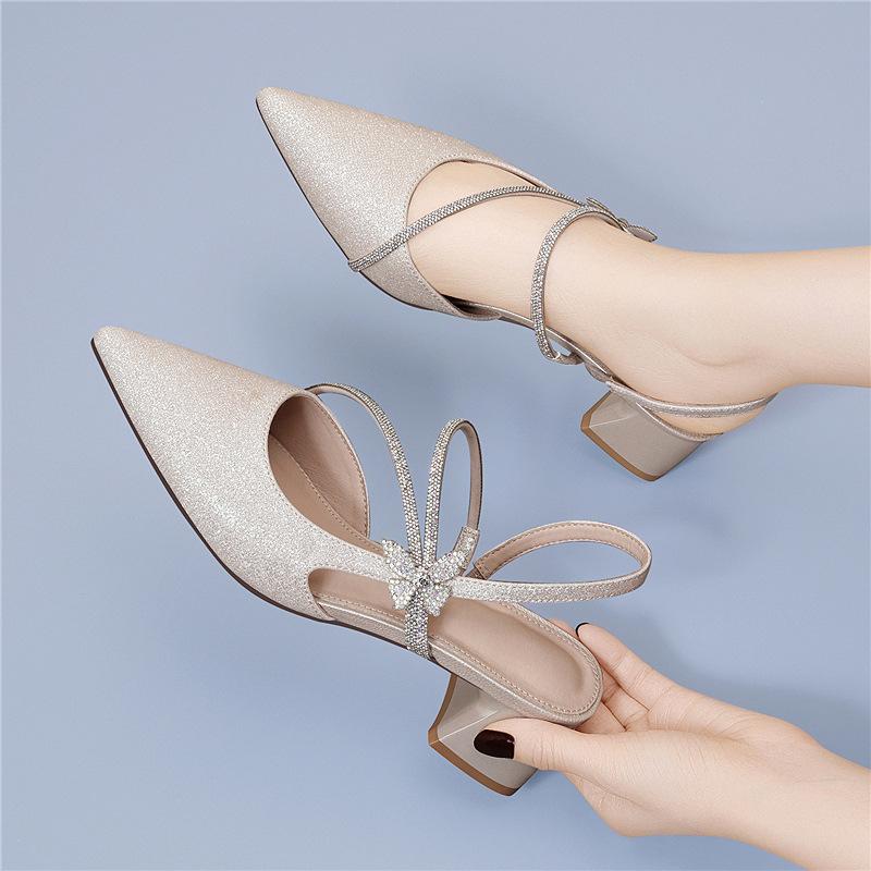 Pointed empty single shoes women's thick heel new summer French Mary Jane shoes with high heel bag head sandals