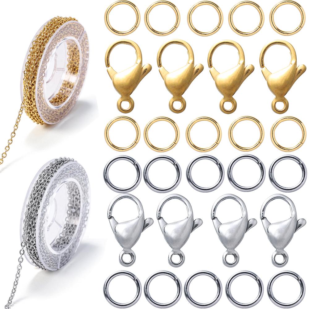 1Set 3m Stainless Steel Chain Bulk Chains Link Chain with Jump Ring Lobster Clasps Jewelry Making Set for DIY Necklace Supplies