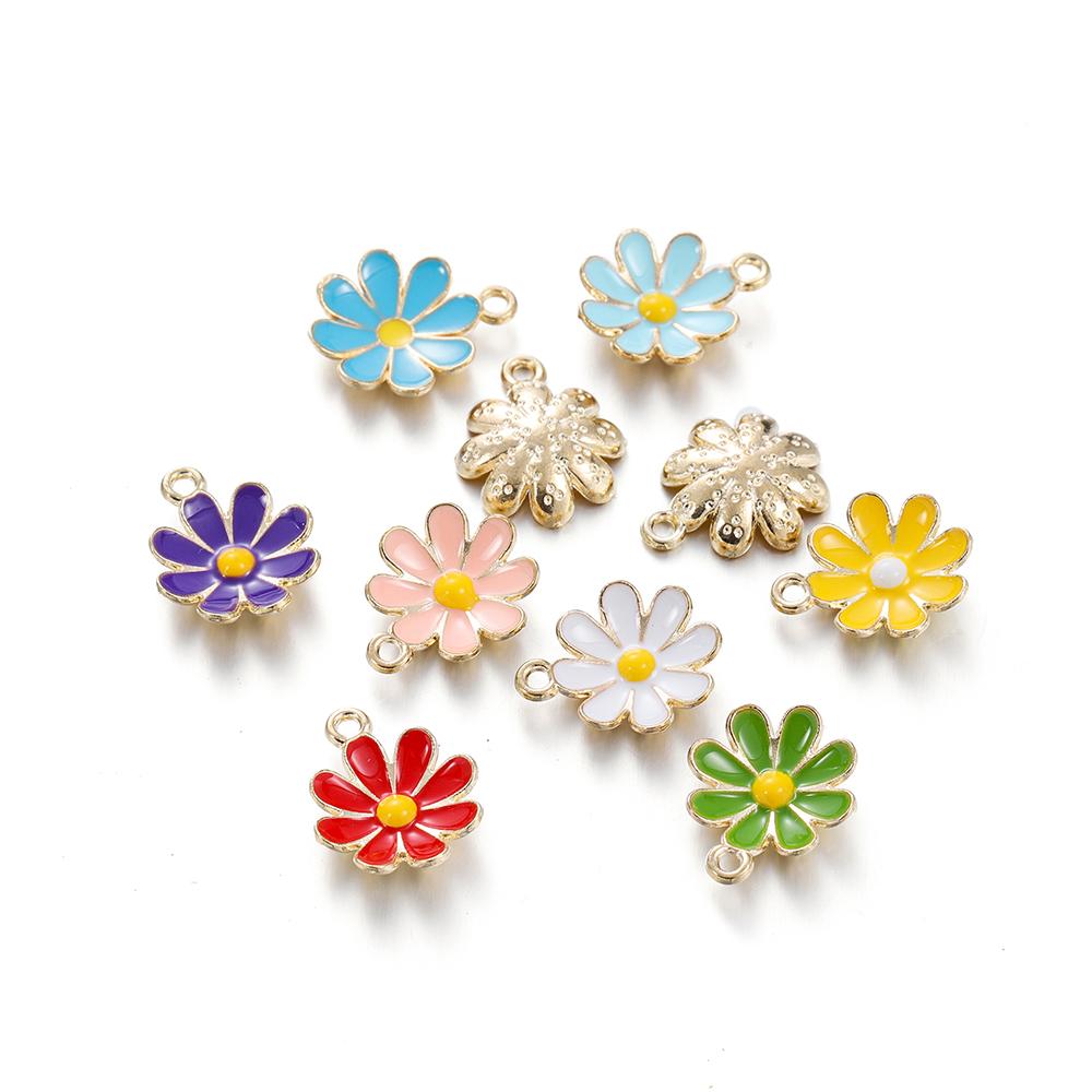 10Pcs Colorful Alloy Drop Oil Daisies Charm Flower Plant Pendant for DIY Bracelet Necklace Earrings Jewelry Making Accessories
