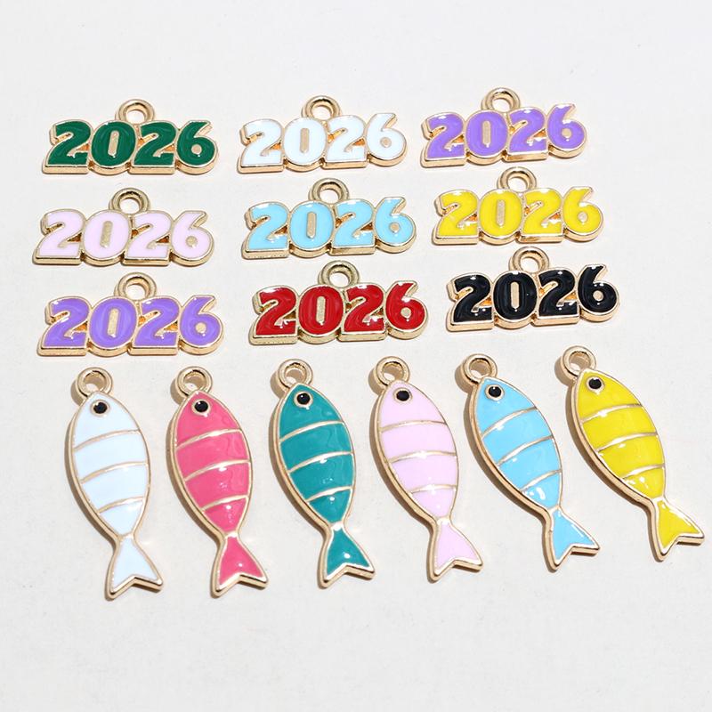20pcs Enamel Fish Year Number 2026 Charms Pendant DIY Jewelry Making Craft Accessories for Earrings Necklace Bracelet Keychains
