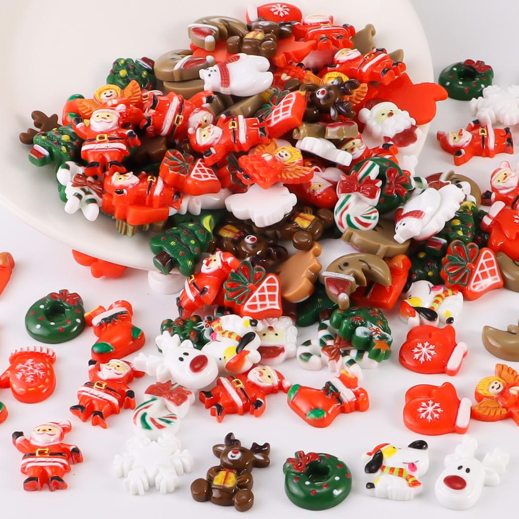 Mixed 30/90/120Pcs Cartoon Flatback Charms Christmas Resin DIY Phone Case Hair Bow Accessories Decor Part 3D Charms