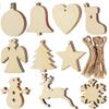 10/100Pcs Christmas Unfinished Wooden Snowflake Elk Ornaments Hanging Cutouts Blank Wood Slices with Cord Craft Embellishments