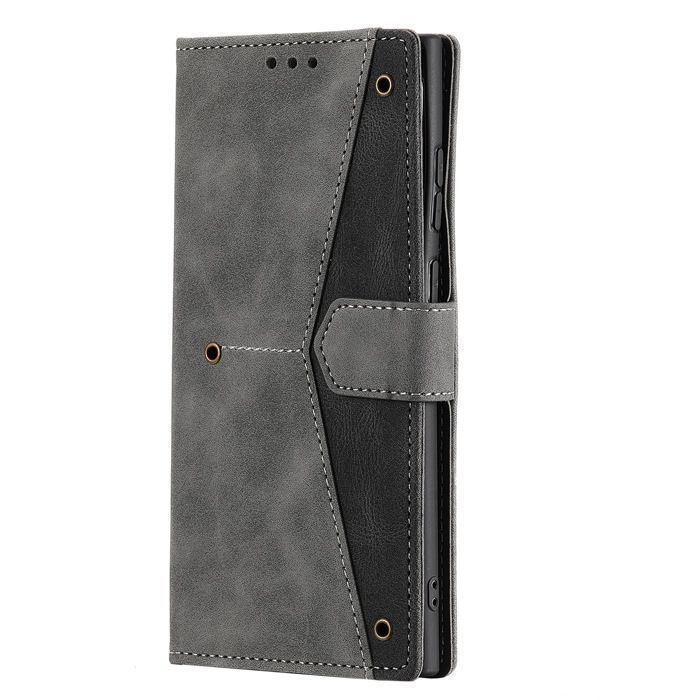 Étui portefeuille pour Samsung Galaxy A57 (5G) - Coque rabat - Cuir synthétique - Support intégré - 3 fentes cartes - Gris