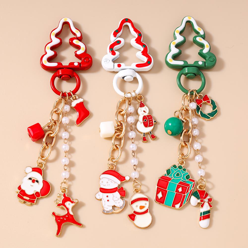 Fashion Christmas Keychain Women Girls Snowman Elk Key Ring Pendants for Handbag Decor DIY Key Chain New Year Gifts