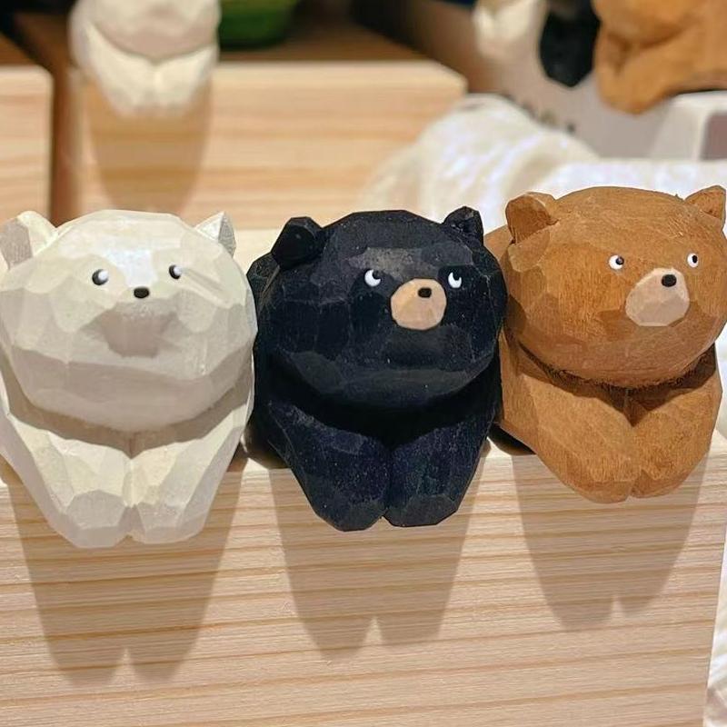 Solid Wood Hand-carved Cute Bear Desktop Ornaments For Bedroom And Living Room Entrance Decoration Ornaments Can Be Used As Gift
