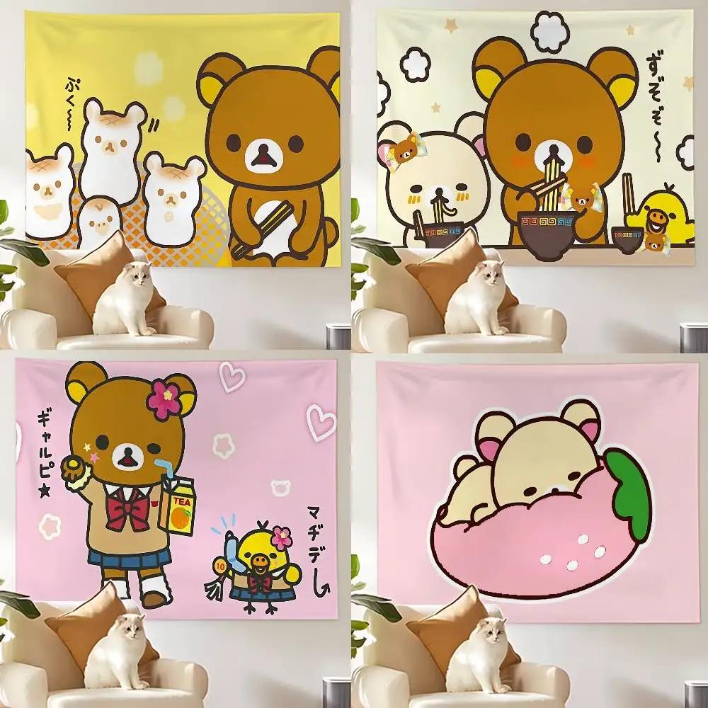 Cute Lazy Bear Daily Life Tapestry 4 Styles Kawaii Cartoon Wall Hanging for Kids Bedroom Dorm Living Room Decor