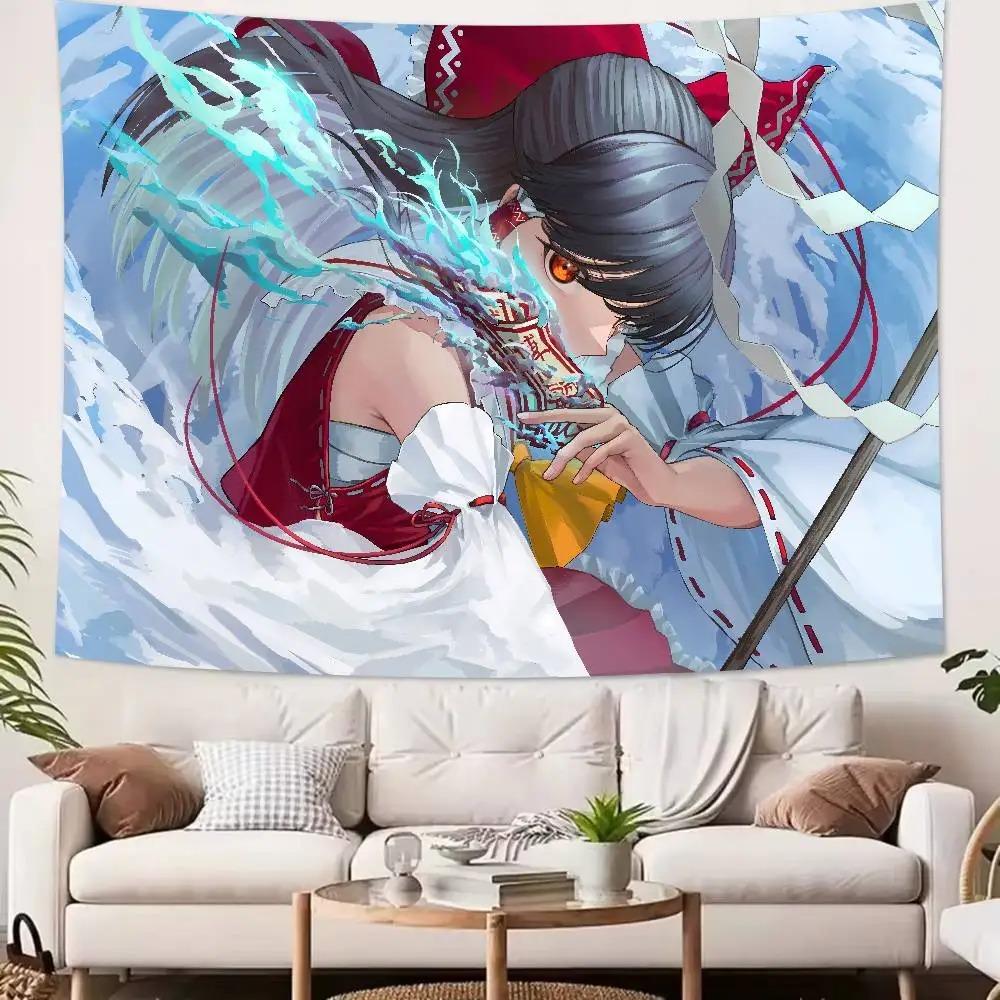 Kawaii Anime Girl Touhou Printed Tapestry Wall Hanging Cute Cartoon Style Fantasy Background Home Decoration