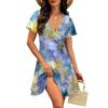Women's Casual Fashion V-neck Floral Print Short-sleeved Dress