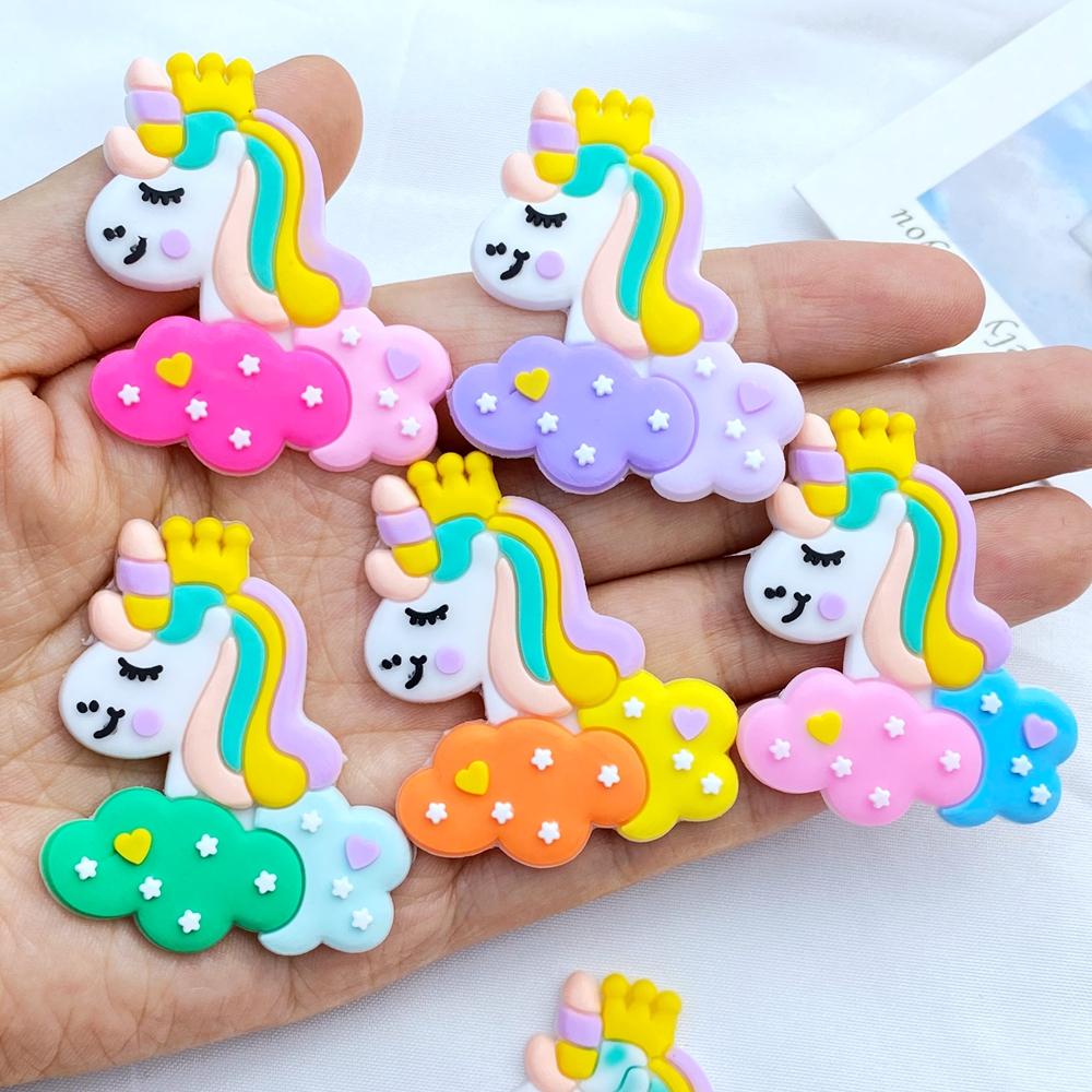 10pcs New Cute Cartoon Little Unicorn Series PVC Flexible Glue Flat Back DIY Scrapbook Embellishment Phone Craft Decoration