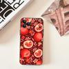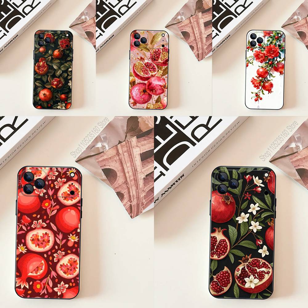 Pomegranate Flower Pattern For iPhone 17,16,15,14,13,12,11,Pro,Max,Plus,E,SE4,Air,Mini Black Soft Cover Phone Case