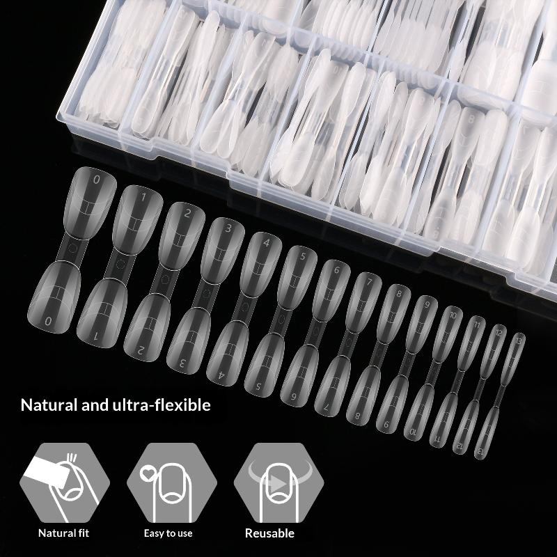140Pcs 2 In1 Nail Dual Forms Quick Nail Extensions With Scale Crystal Armor Model Full Cover Tips Manicure Tool