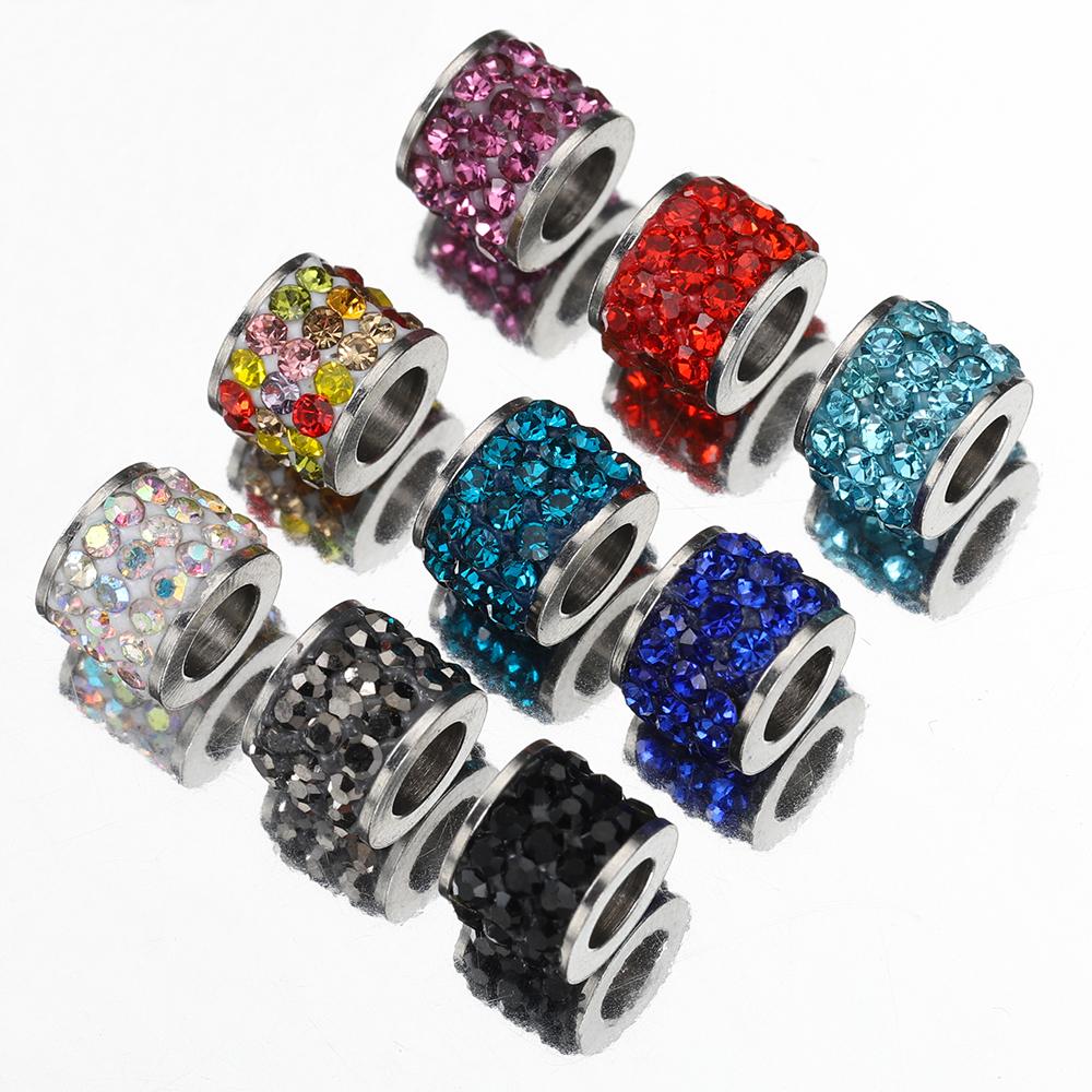 10pcs Mix Colorful Rhinestone Beads Stainless Steel Crystal Spacer Loose Beads Charms for Jewelry Making DIY Bracelet Necklace