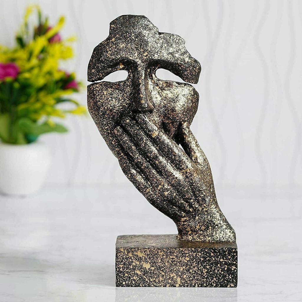 Handmade Modern Thinking Human Face Sculptures Colour Golden For Decor 9 Inch IQN2267