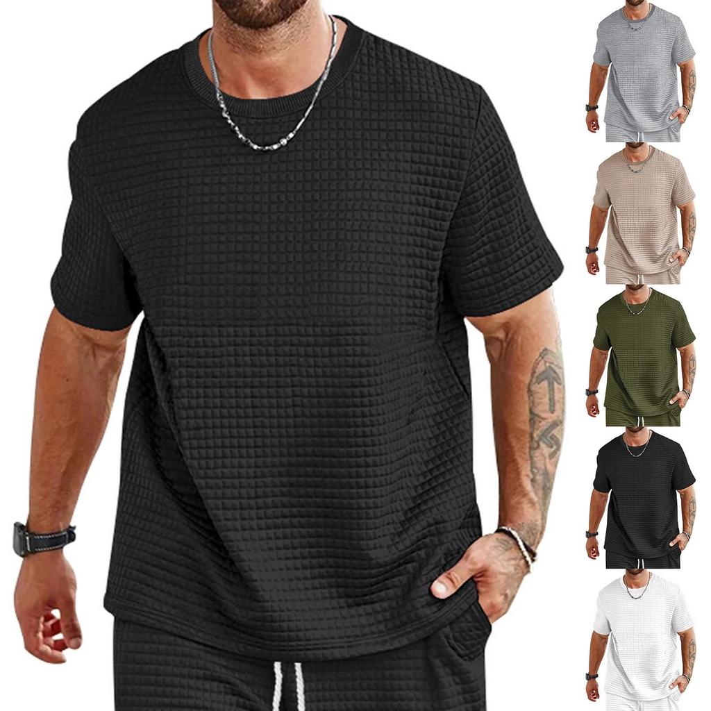 Men's Summer Fashionable Sports Casual Short-Sleeved Tops Men's Solid Color Round Neck Small Square T-Shirt