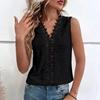 V Yaka Dikiş Seksi Hollow Dantel Kadın Gömlek Rahat Yaz Kolsuz Bluz Kadın Vintage Zarif Üstleri Moda Giyim 25894