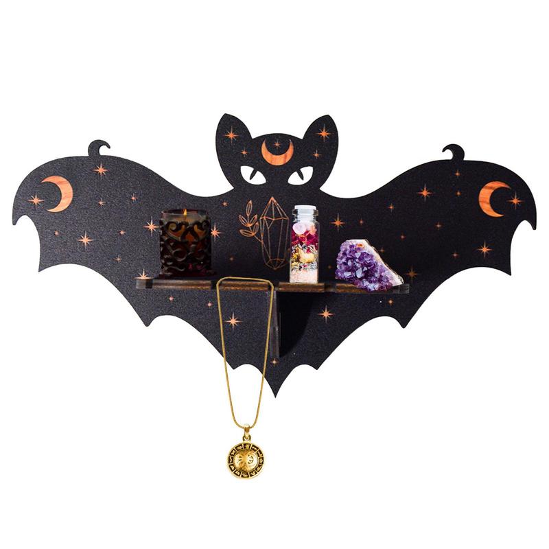 Black Crystal Display Stand Bohemian Hand Stand Witch Wooden Hanging Decorative Stand And Crystal Stone Shelving Wall Shelves
