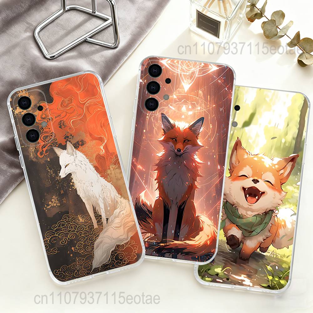 Cartoon Kawaii cute fox Phone Case For Samsung S30,S25,S24,S23,S21,S22,S20,S10,5G,FE,lite,PIus,Ultra Transparent Cover