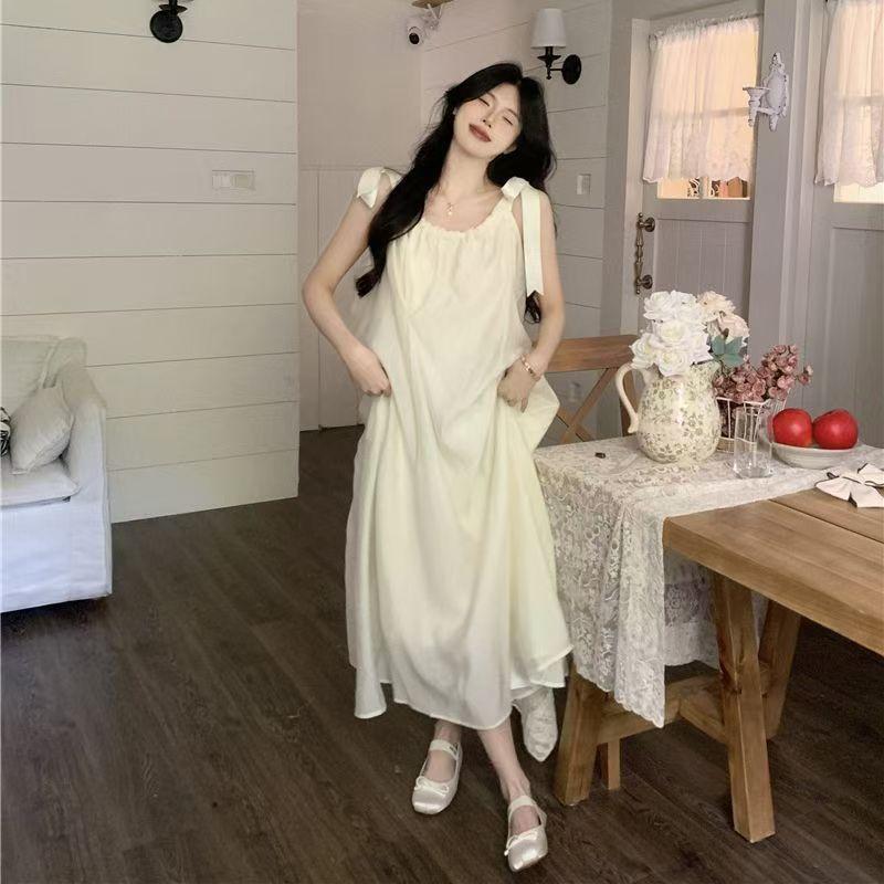 Temperament medium and long dress small fragrant French suspender chiffon dress women's summer new seaside beach vacation skirt