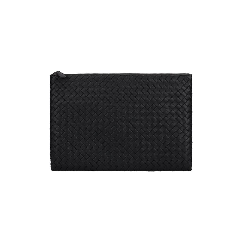 Bottega Veneta Intrecciato Classic Woven Design Zip Closure Lambskin Clutch Women Clutch Black 522430V3UN11275
