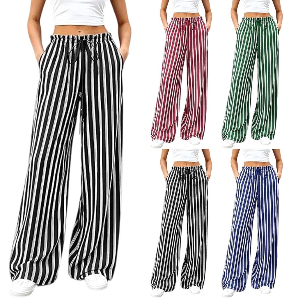 2026 Fashion Striped Elastic Waist Wide Leg Casual Pants