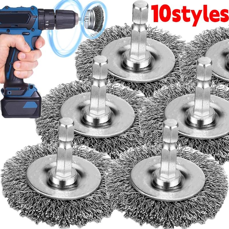 10styles Steel Wire Brush Wheel Cup Brush Metal Polishing Rotary Cleaning Rust Corrosion Rust Removal Edge Grinding Deburring