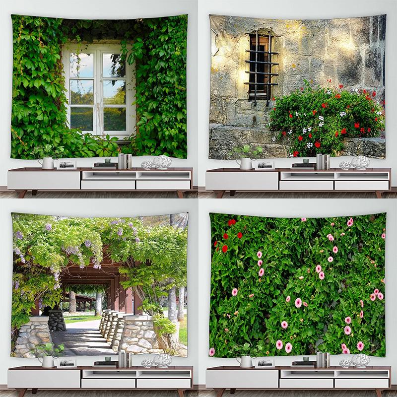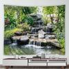 Home Decor Wall Hanging Tropical Garden Landscape Tapestry Waterfall Flower Tree Vintage Brick Vine Plant Park Natural Scenery