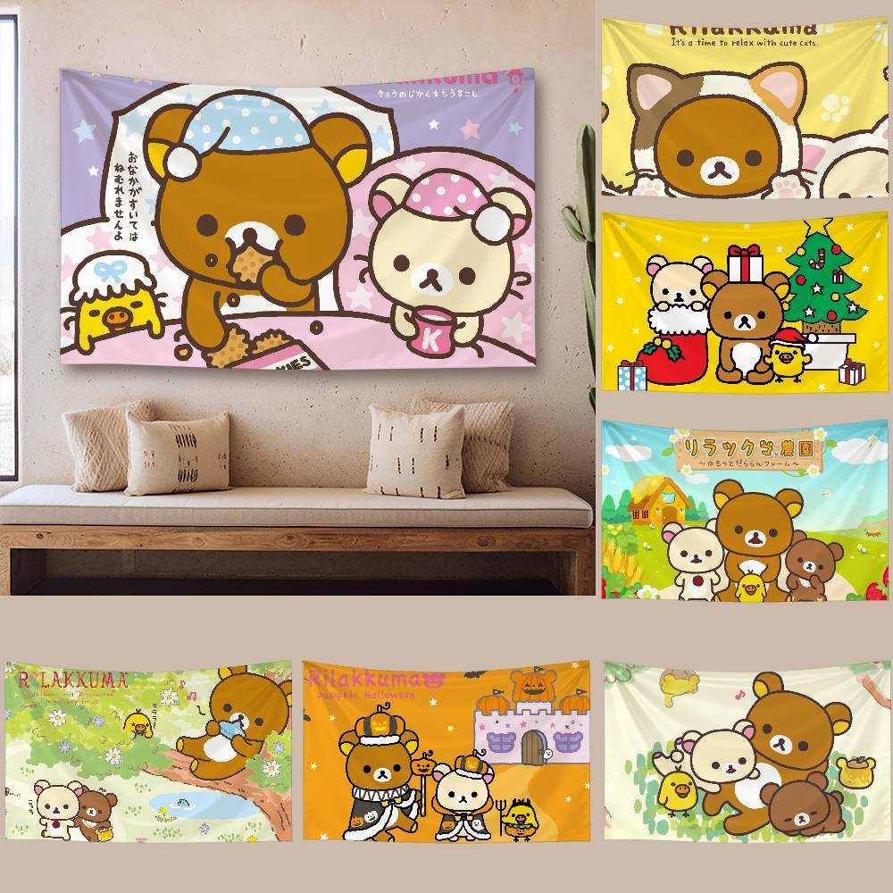 Cute RRilakkuma Tapestry Wall Hanging Tapestry Art Deco Blanket Curtain Hanging At Home Bedroom Living Room Decor