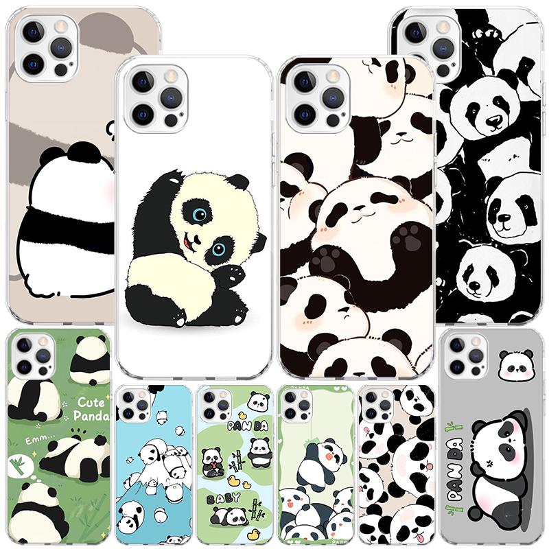 Cartoon Cute Panda Bear Phone Case For iPhone 17 Air 16 Pro Max 16E 15 + 14 Plus 11 12 13 Mini 7 8 SE Gift Print Cover Fundas 17