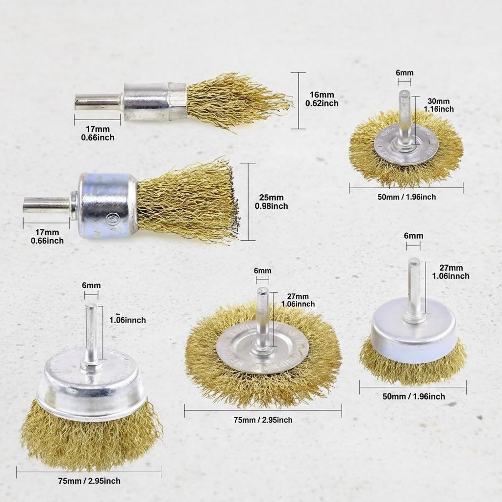 6Pcs Wire Brush Shaft Grinding Wheel Rust Removal Polishing Electric Grinder Drill Accessory