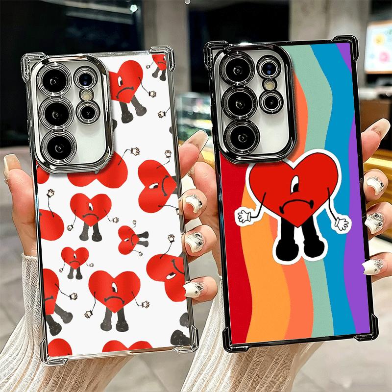 Bad Bunny Heart Plating Phone Case For Samsung Galaxy S24 S25 FE S26 Edge S23 Ultra S22 S21 Plus S20 Anti-Fall Airabag Cover