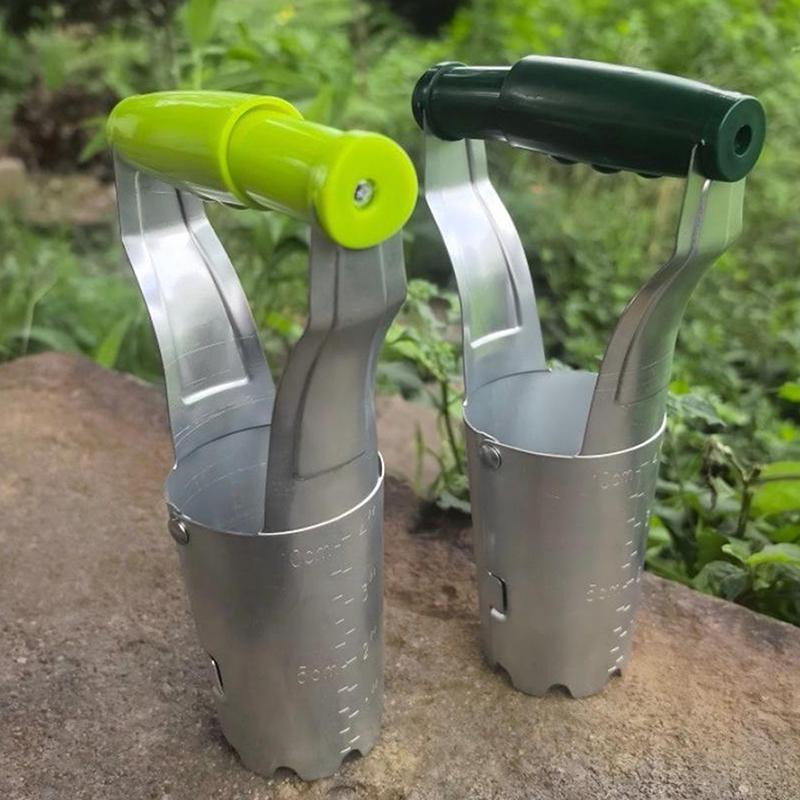 Professional Stainless Steel Seed Planter with Wooden Handle Multipurpose Hole Drilling Tool for Indoor Outdoor Garden Planting