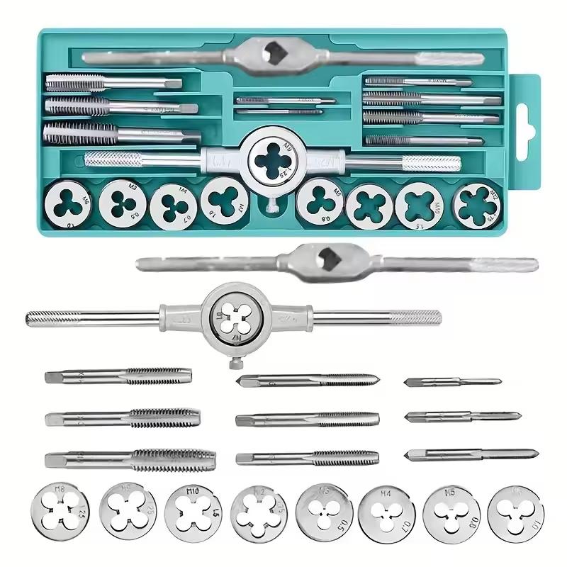 Multifunction Tap and Die Set 20Pcs M3-M12 Metric Screw Thread Plugs Hand Screw Taps Straight Taper Tapping and Thread Tools
