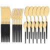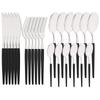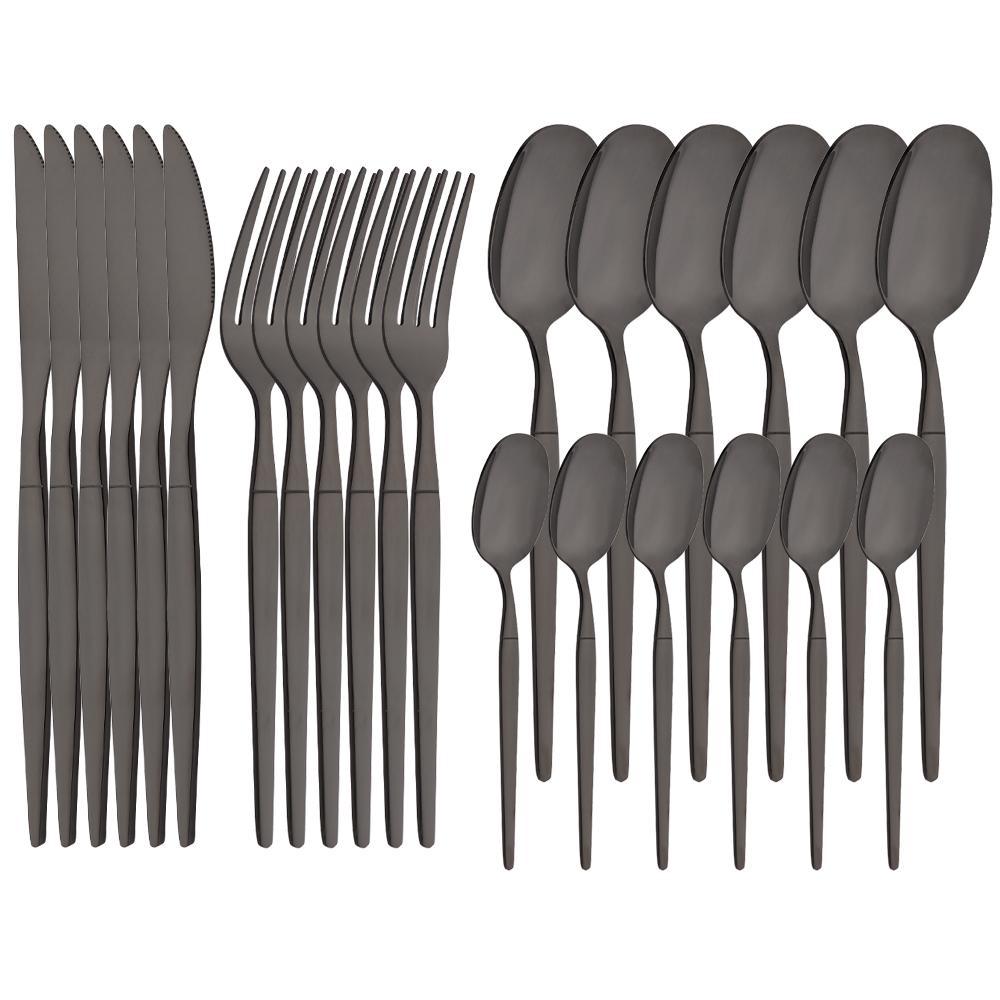 24Pcs Mirror Black Flatware Set Stainless Steel Dinner Knife Fork Coffee Spoon Cutlery Set Kitchen Tableware Dinnerware Set