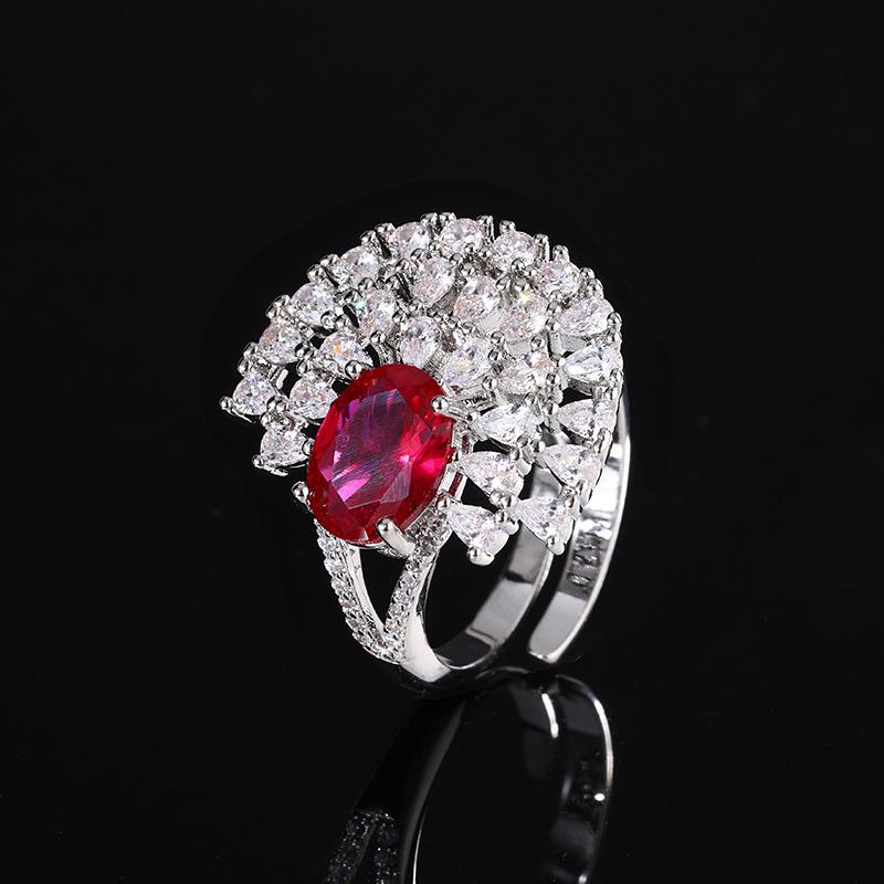 Jewelry New Ring Zircon Ruby Oval Ring Inlaid Cluster Premium Versatile Vintage Women's Jewelry