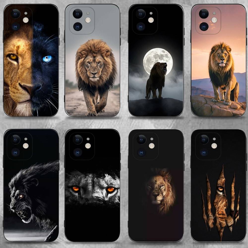 Animal Cover Tiger Lion Phone Case For iPhone 16,15,14,13,12,11 Plus,Pro Max,XS,X,XR,SE,Mini,8,7,Soft Silicone Black Cover