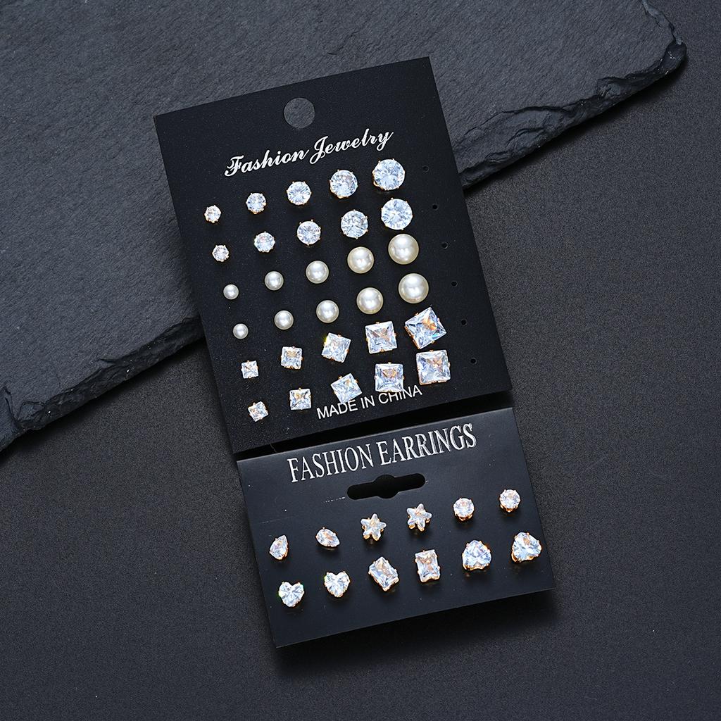 21 Pcs Simple Crystal Pearl Women Earrings Set Fashion Basic Geometric Type Sixclaw Zircon Stud Earrings Retro Jewelry Gifts New